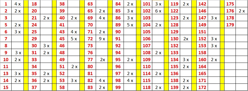 1, 4, 5, 6, 7, 10, 15, 16, 17, 20, 21, 23, 24, 25, 27, 29, 30, 34, 43, 45, 48, 49, 54, 55, 56, 57, 60, 61, 62, 63, 64, 68, 69, 70, 71, 72, 74, 75, 76, 77, 79, 80, 82, 84, 86, 89, 90, 91, 93, 97, 99, 102, 104, 105, 1066, 108, 109110, 112, 114, 115, 117, 118, 119, 121, 122, 123, 124, 126, 128, 133, 137, 142, 148, 155, 156, 157, 158, 159, 160, 164, 165, 166, 168, 171, 172, 173, 174, 176, 178 a 179 🙂