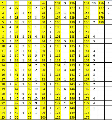 1,4,10,11,12,14,15,16,17,20,22,30,42,49,51,58,59,66,80,86,87,88,90,91,96,97,99,101,103,104,105,109,110,111,112,114,116,122,123,125,131,141,142,143,144,147,154,156,160,165,168,170,172,174,175,176,177,178,179,180