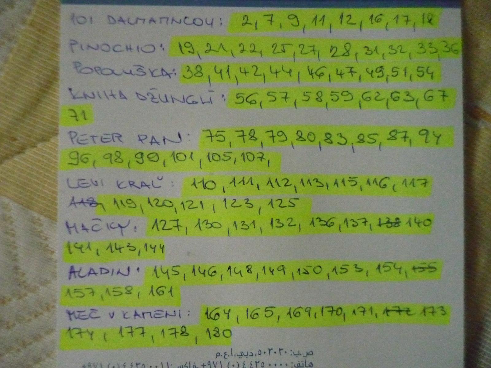 čísla kartičiek : 2,4,5,7,10,11,13,16,18,20,21,23,24,26,27,28,33,36,37,39,40,41,42,43,45,46,47,48,49,50,53,54,56,57,58,60,61,62,63,64,67,69,70,71,73,74,77,79,80,83,84,87,89,90,91,92,93,94,97,98,99,100,101,103,104,105,107,108,110,114,115,117,118,119,120,121,122,123,129,132,134,136,137,138,139,140,143,145,146,147,148,149,156,157,158,159,161,164,168,172,173,174,177,178,