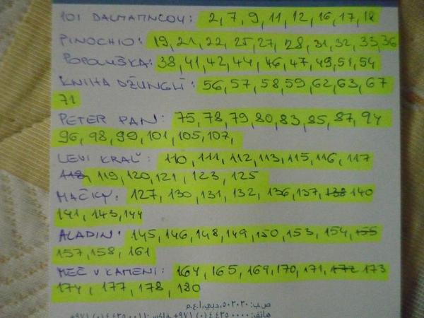mám na výmenu:5,17,22,23,26,27,40,45,50,54,60,62,68,69,70,71,72,73,77,82,83,85,92,94,95,99,105,107,116,117,120,121,124,126,137,148,151,153,155156,159,172,