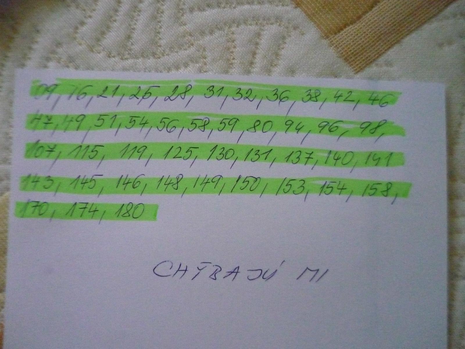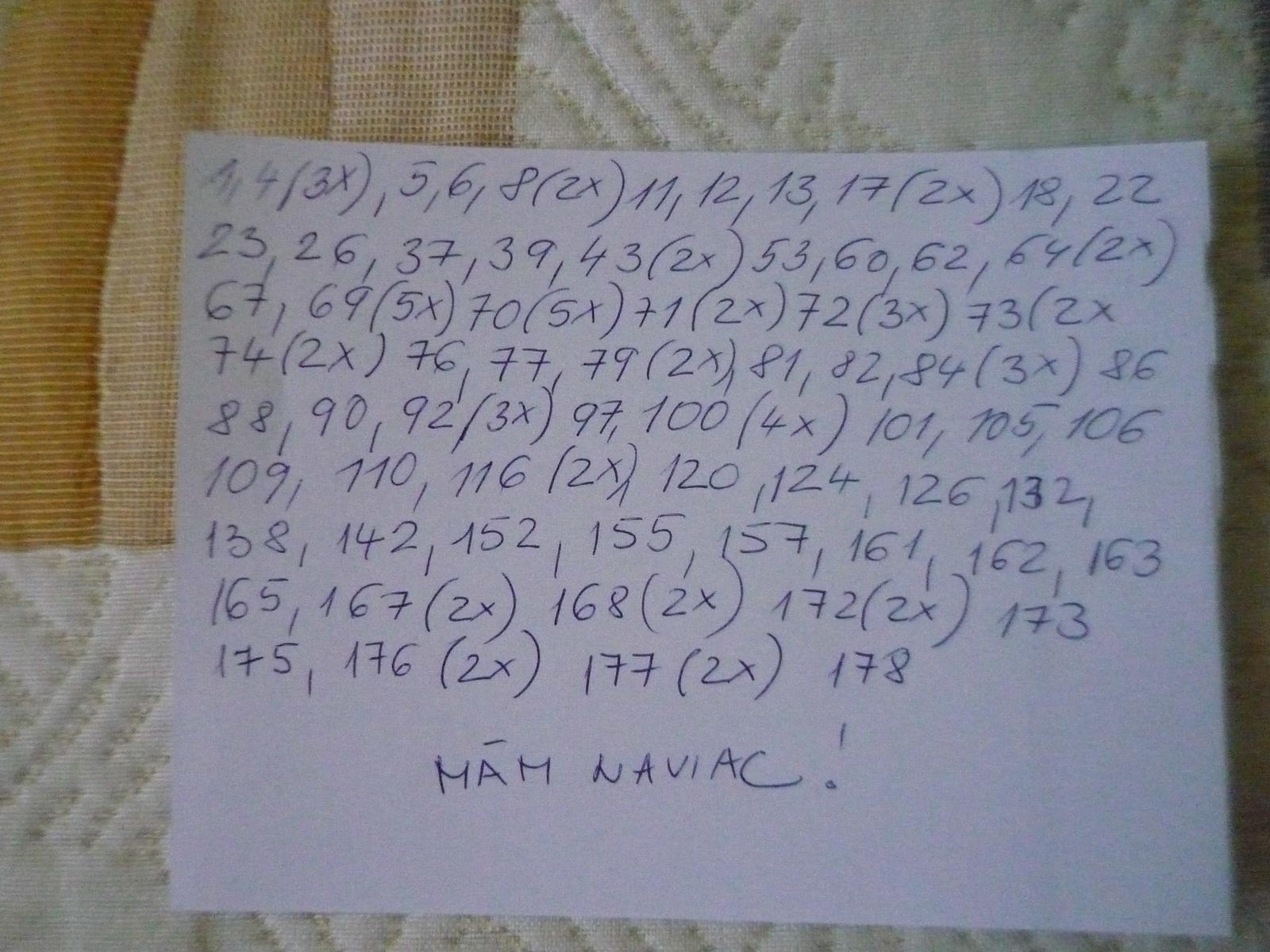 Nám chýba už iba 78 x 2 ks. Kludne vymenim 1 ks 78 za 20 ks iných čísel.