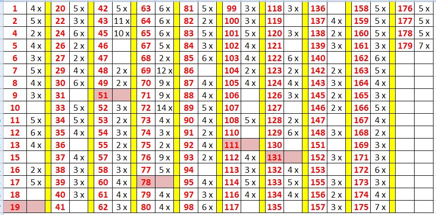 2 5 7 8 9 11 12 13 16 17 18 22 23 24 26 27 29 30 31 34 36 37 39 40 41 43 45 46 49 50 52 53 54 60 65 68 69 70 71 72 76 84 85 86 88 89 90 94 99 107 108 110 112 113 115 118 120 121 126 128 129 130 132 133135 136 138 139 140 143 145 146 148 149 153 155 157 159 160 161 163c 164 167 171 174 a 178. niečoho je aj viac kusov, ak by sa ktosi našiel, budem rada. 🙂