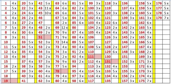 5,6,9,13,18,19,20,23,29,30,32,35,39,42,47,48,51,53,56,58,59,61,62,68,79,85,86,89,90,92,96,97,102,105,