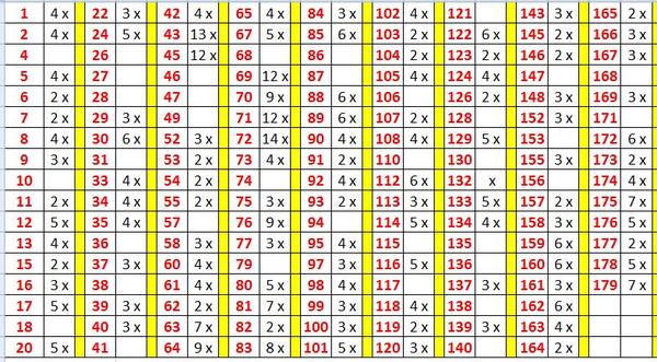 1,7,11,15,16,21,24,25,26,27,28,30,31,33,34,36,37,38,40,41,42,43,,45,46,49,,50,52,54,55,56,58,60,63,64,68,69,70,71,72,73,74,75,76,77,80,82,85,91,92,94,95,97,98,101,103,105,106,107,109,11,112,113,114,115,117,119,120,122,123,124,126,127,132,133,135,136,137,139,140,142,143,145,146,148,149,151,152,155,158,159,162,163,166,167,169,171,172,174,175,178