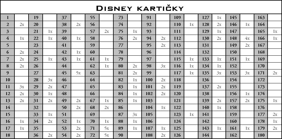 Chýbajú nám kartičky: 3,19,34,59,67,75,131,161