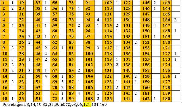 Máme : 4, 6, 8, 9, 12, 13, 15, 17, 18,