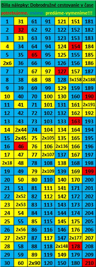 CHýbajú nám nálepky: 5,6,7,11,12,17,19,22,23,29,34,38,39,57,60,62,63,70,72,78,82,89,92,99,101,105,113,115,119,120,132,134,146,150,154,171,173,174,186,192,193,194,202,208,209.