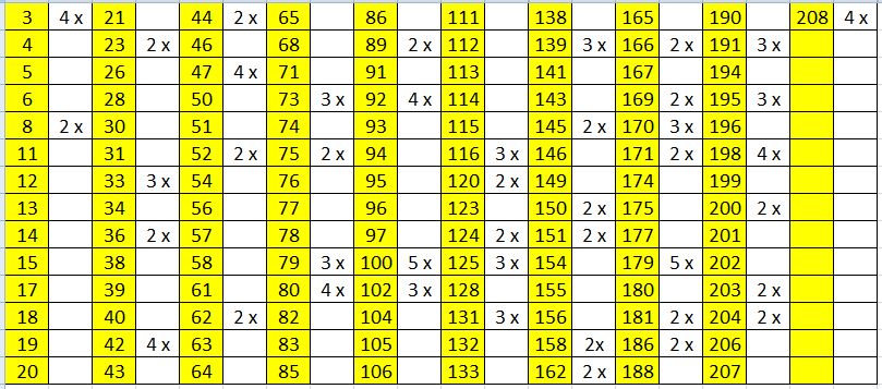 navyše máme : 2, 3, 14, 47, 52, 53, 57, 62, 63, 73, 84, 90, 94, 101, 107, 113, 116, 118, 128, 133, 150, 160, 162, 167, 2x170, 173, 182, 186, 191, 199, 201, 207