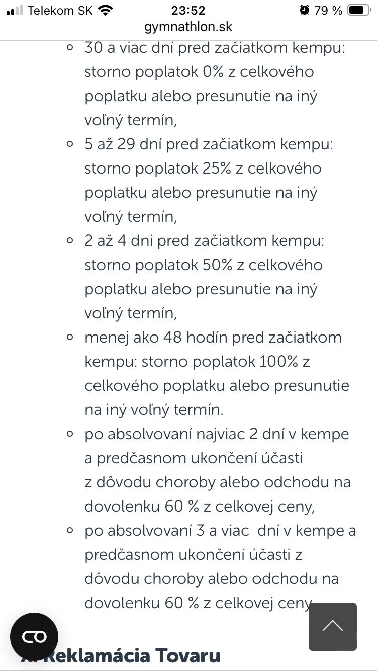 Tak ja napisem svoju zlu skusenost s gymnathlon camp, syn mi dost vazne ochorel pred campo, pisala som im, ze je v nemocnici. Peniaze mi nevratili, ponukli mi niekolko moznosti z ktorych ani jedna uplne vratenie penazi neponukala. Nechala som sa oblbnut ze kurz na jeden polrok budem mat 100% zlavu a nakonec pozeram ze kurz je 125e a camp stal 160e. 40e len tak vyhodenych a uz nikdy viac gymnathlon.