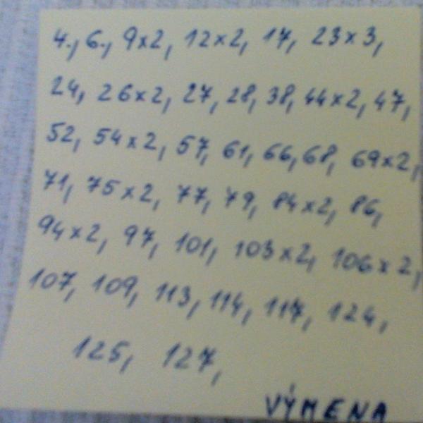 na výmenu mám čísla: 8, 12, 22, 24, 2x29, 33, 41, 44, 50, 57, 58, 77, 85, 91, 95, 96, 3x98, 100, 111, 2x128