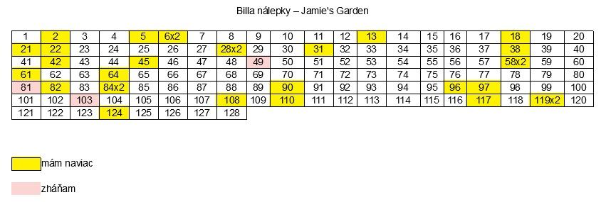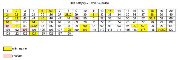 Jamieho záhrada Billa - výmena nálepiek