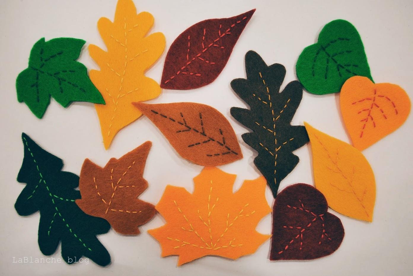 Este mozem na zaklade tvojho napadu spravit 5 - listie z filcu. Mozem vacsie listy vystrihat z filcu alebo z machovky. Mam drevenu skladacku na listy, tak to lahko obkreslim. Vid foto.