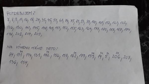 Potrebujeme 33, 41, 73, 74, 83, 92, 96, 98, 101, 104, 105, 110, 127, 128,