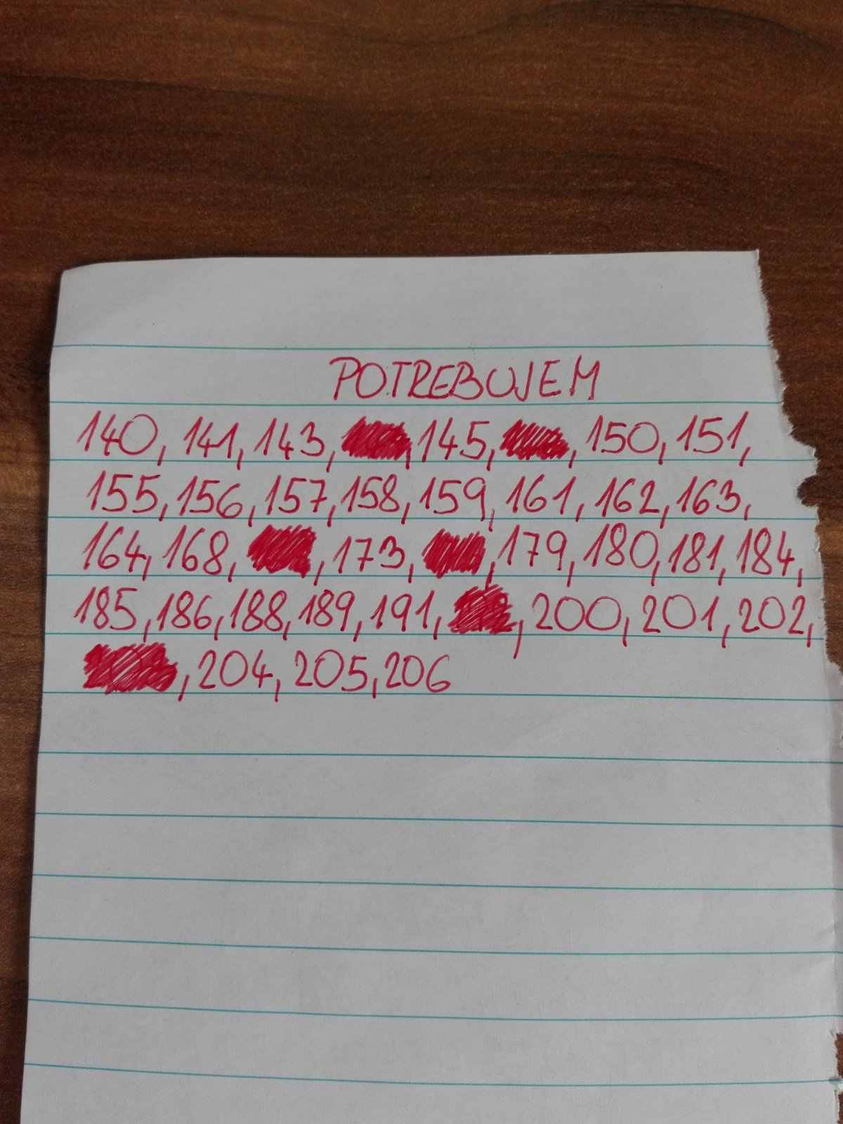 Dobry den. Potrebujeme 34,148,150. Na vymenu mame vela