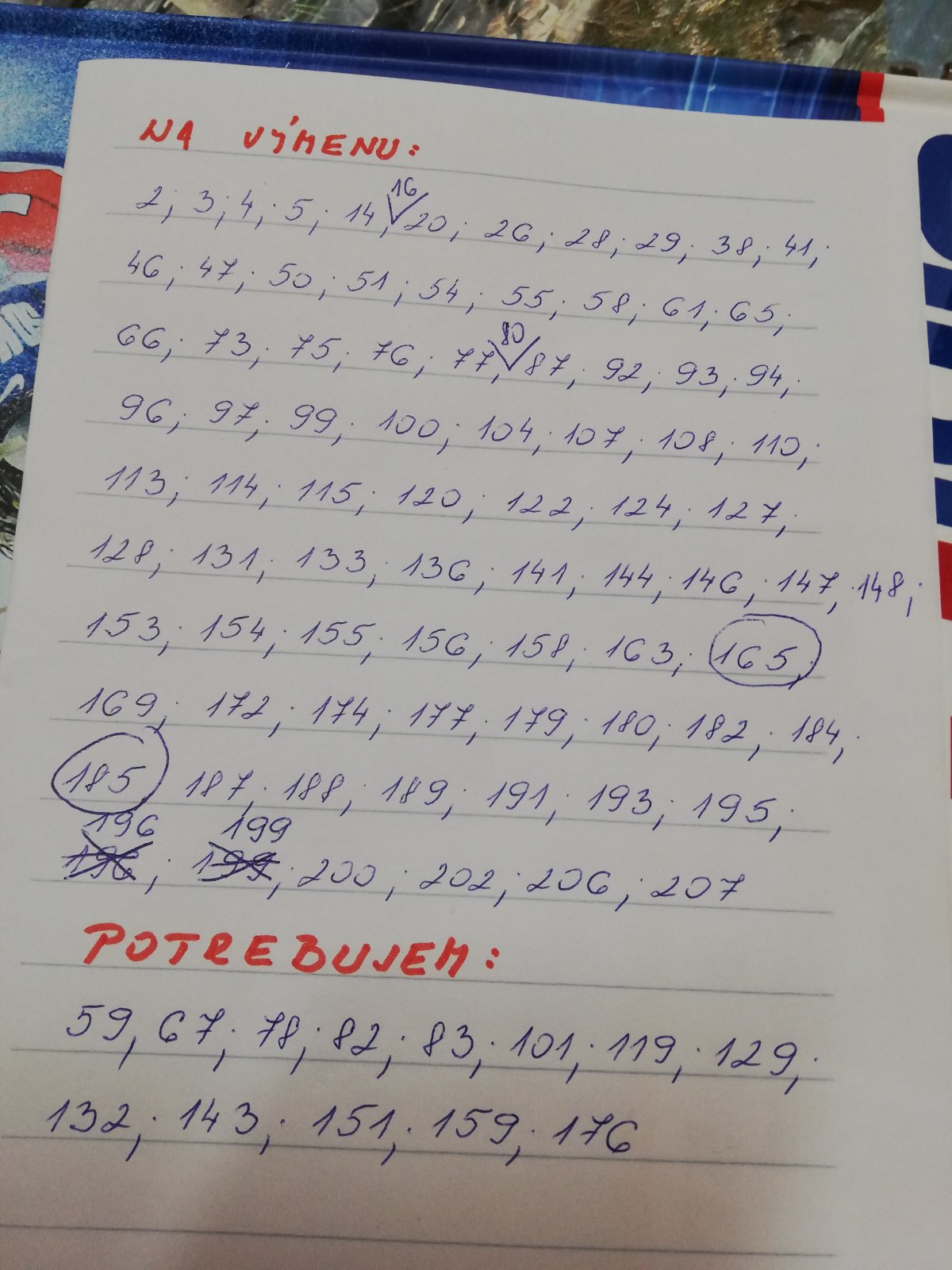 Chybaju nam posledne cisla 119 a 129 na vymenu mame vela
