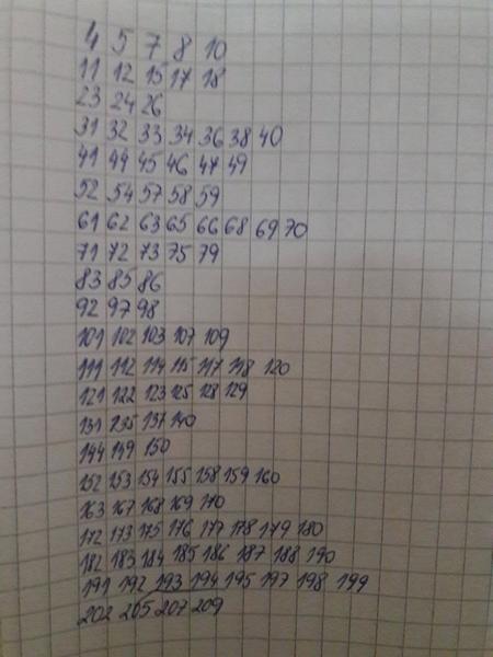 1, 10, 12, 15, 17, 21, 24, 34, 38, 39, 41, 49, 52, 56, 61, 65, 69, 76, 77, 83, 84, 85, 88, 90, 95, 99, 107, 109, 111, 113, 115, 118, 119, 121, 122, 125, 131, 133, 134, 135, 137, 138, 142, 143, 156, 158, 159, 160, 163, 174, 177, 180, 182, 188, 190, 193, 197, 199, 203, 205