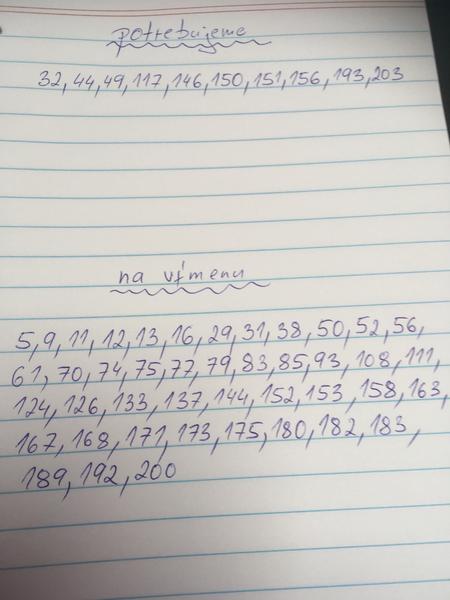 Hľadáme 5 6 8 10 41 68 81 100 121 147 151 161 167 173 192