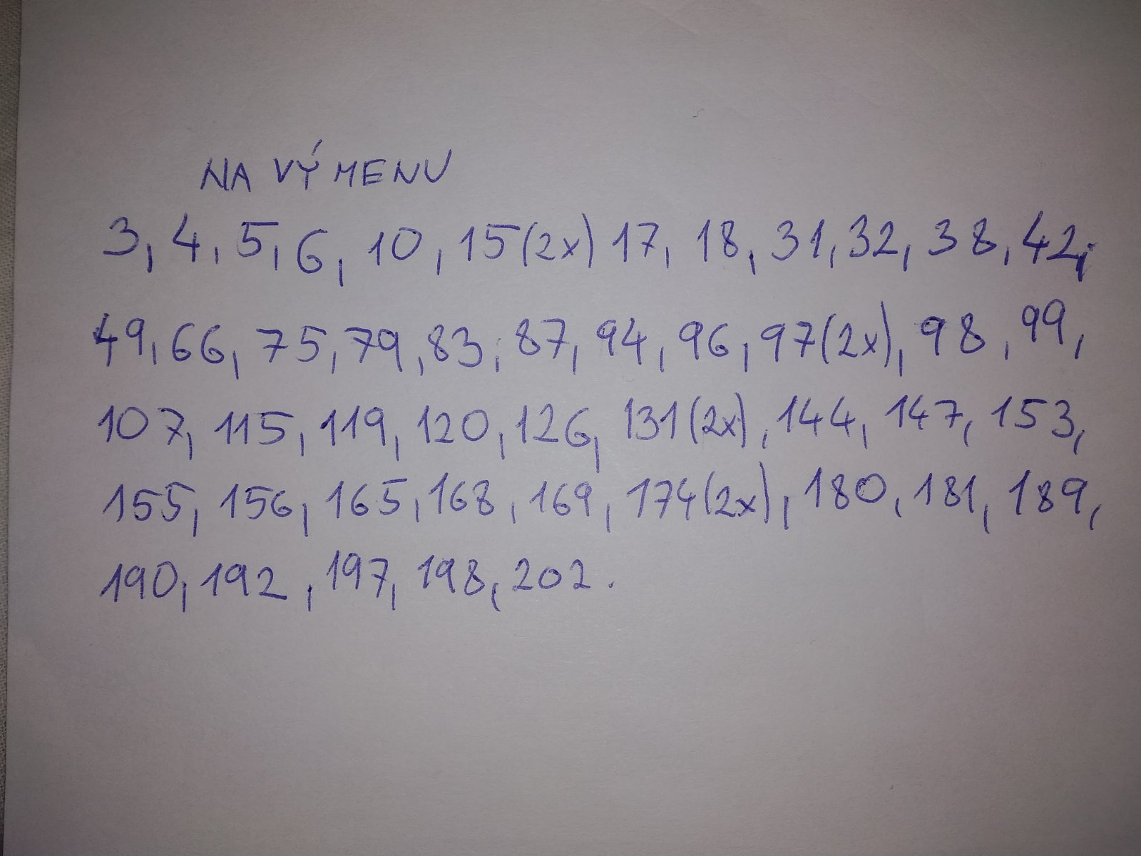 Na výmenu máme: 1,27,48,52,83,85,103,127,138,143,176,178,183,203.