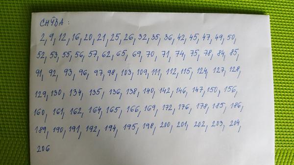 Ahojte mam na vymenu tieto cisla:2,10,13,16,21*2,24*4,33,34*4,37,38*2,39,42,45,50,51*3,58,61*2,62,63*2,66,68*3,75,76,77,84,91,95*2,105,108*2,113*2,114*2,116*2,118,119*3,121,125,132*2,134,139*3,141,144*2,148,158,161,182,184,195,196,206,210*2 a potrebujem 5,25,40,41,48,55,64,65,80,85,87,88,92,97,99,101,109,110,126,137,138,147,151,154,156,157,160,164,166,167,168,169,170,174,176,179,180,186,192,194,207 osobny odber je mozny v BA alebo postou