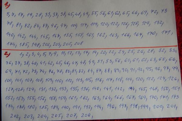 Ahojte na vymenu mám tietok cisla. 12, 23, 28, 39, 48, 56, 58, 63, 64, 85, 87, 91, 102, 106, 113, 118, 119, 121, 128, 149, 153, 156, 158, 167, 177, 183, 185, 186, 187, 194, 210. A ja potrebujem iba 99, 134, 188.