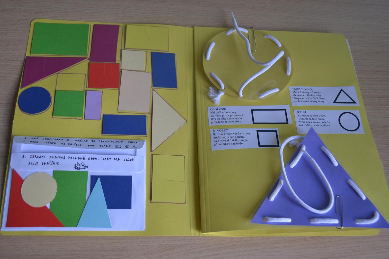 Ahojte, posielam aj ja svoj výtvor Geom.tvary, nakoľko budem koncom týždňa na pár dní odcestovaná 🙂 .... niektoré veci ešte musím podoťahovať 🙂 písmo mojou rukou zmením na tlačené, niektoré veci ešte zalaminujem, pridám popisy niektorých aktivít ... atď. na obal ešte napíšem názov Geometrické tvary, na konci som pridala zopár pracovných listov, ale bude ich ešte viac ... ďalej je tam domino, pexeso, skladanie panáčika, divadielko so zvieratkami, ktoré sa ukryli do geom.tvarov, prevliekačka, básne o geom.tvaroch, hra s kockou, obťahovanie geo.tvarov, skladanie geoom.konštrukcií, vkladanie geo.útvarov do predkreslených tvarov ... mrknite sa na to 🙂