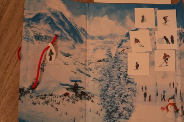 na 3 - cela prva dvojstrana - zimna priroda a aktivity, ktore sa daju v zime vykonavat... (v rohu bude obalka a v nej tie obrazky, co tam vidite... a dieta priraduje - lyziara k lyziarom, korculiara ku korculiarom, ... atd)