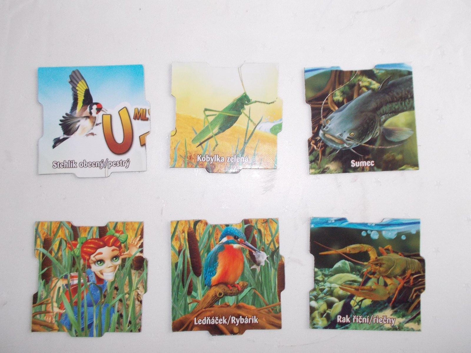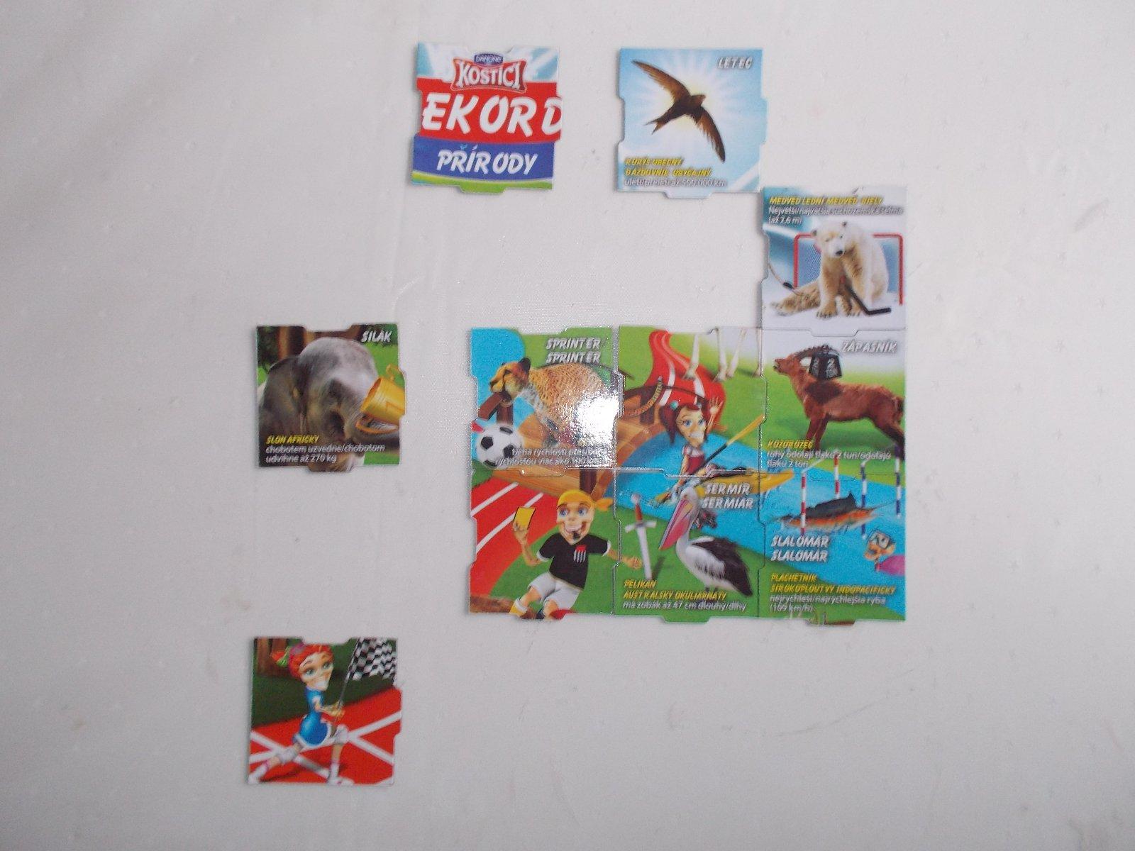 Rekordy prírody : 1- stíhač, 2- tyčkár, 4- dlháň, 16- Boxera/klokan, 17-pštros, 21- Kostička so zástavou .