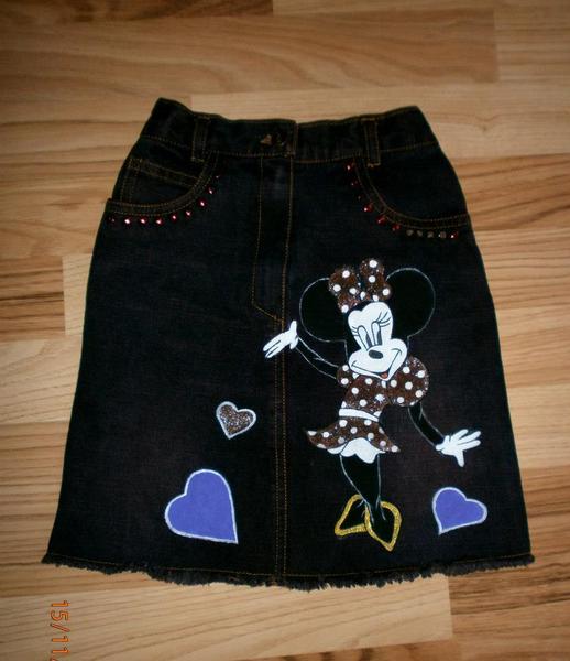 joj,ženy...takááá som nasr..á... pred pár mesiacmi som maľovala túto riflovú sukničku nerchau-kami, suknička ako nepomaľovaná bola nosená, bez chýb..mojej malej už dávno malá..tak ,ked som začínala maľovať,tak som ju takto vylepšila. Chcela som ju dať nejakej známej,nech poteší nejakú malú obdivovateľku Minnie.Ale všetky už majú väčšie baby, tak som ju po čase dala sem na bazár na predaj aj s tými červenými lurex pančuškami,akurát sa k nej hodia, za 4€ spolu ! Pripomeniem ,že ako maľovaná tá suknička nikdy nebola nosená,ani praná,teda maľba je nová. Teraz som ju predala jednej a ona miesto dakujem ma ešte do....la , že šaty Minnie nemajú pekný odtieň /zmiešavala som červenú s trblietavou striebornou/ že asi je to spraté a ,že je sklamaná... no kks,tak človek sa nad tým hrbí 4-5 hodín, ked maľuje,zažehluje a nakoniec ho niekto miesto toho ,aby ocenil ručnú prácu, ešte dodrbe a to za 4€ !!!...musela som si to sem napísať,tak ma to vytočilo 😒