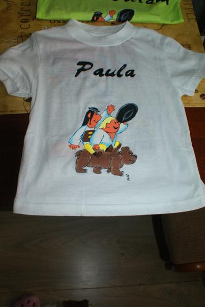 Na písanie na tričká je ozaj najlepšie to gélové pero (zatiaľ čo viem, existuje v troch farbách - čierna, modrá a červená) kupujem ho tu http://www.animas.eu/. Tiež tu kupujem čisté tričká na maľovanie, majú aj detské a hlavne v rôznych farbách. Predtým som kupovala v číňakoch ale z jednofarebných mali len čierne a biele, navyše sa zdalo, že ten namaľovaný obrázok na nich vydrží dlhšie ako tričká samé 😀