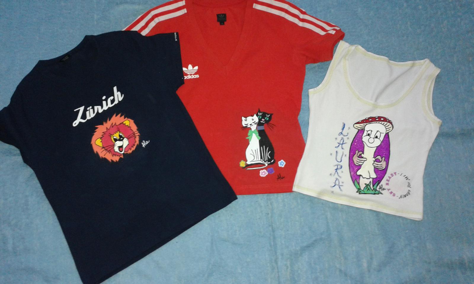 Na písanie na tričká je ozaj najlepšie to gélové pero (zatiaľ čo viem, existuje v troch farbách - čierna, modrá a červená) kupujem ho tu http://www.animas.eu/. Tiež tu kupujem čisté tričká na maľovanie, majú aj detské a hlavne v rôznych farbách. Predtým som kupovala v číňakoch ale z jednofarebných mali len čierne a biele, navyše sa zdalo, že ten namaľovaný obrázok na nich vydrží dlhšie ako tričká samé 😀