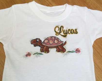 tak už mám za sebou prve skúšobne maľovanie na staré tričko 🙂 ....inak aj vám ten namaľovaný obrázok tak presvitá na druhej strane trička???