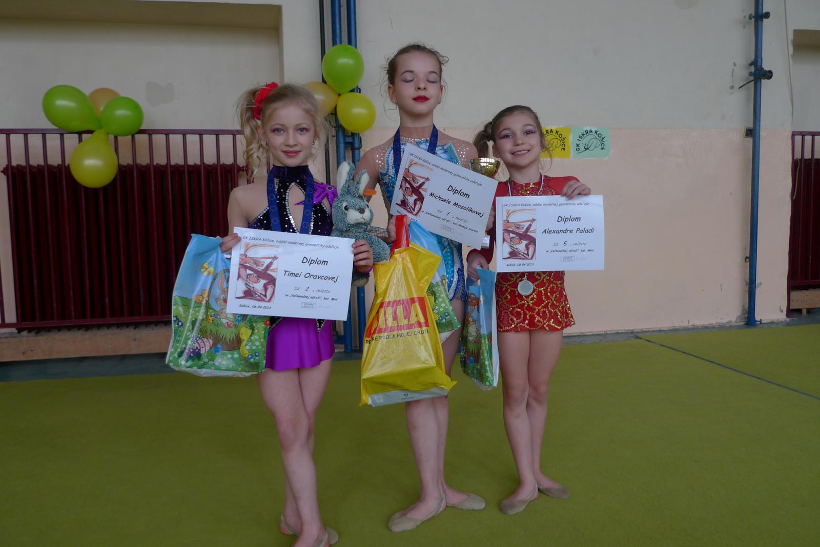 ta baba na lavo je Timka v kosiciach skoncila druha a ta v strede Miska bola prva...tie dve teraz pojdu o tyzden na sutaz do Nitry..a potom maju este dalsie sutaze, asi aj za hranicami a nasu Sasku caka sutaz az v juni bratislavsky kraj, teda ak zvladne zostavu s kruhom...tak pojde....trenerka na nu nema moc casu. vacsinou sa venuje tym dvom a pokial viem od jednej trenerky nemozu ist dve baby s tou istou zostavou...ale sak nevadi....