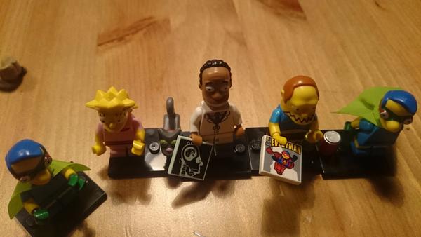 Zbierame tieto mini legové figúrky (postavičky) Simpsons, máme len 6 a jednu - číslo 15 na výmenu 😀