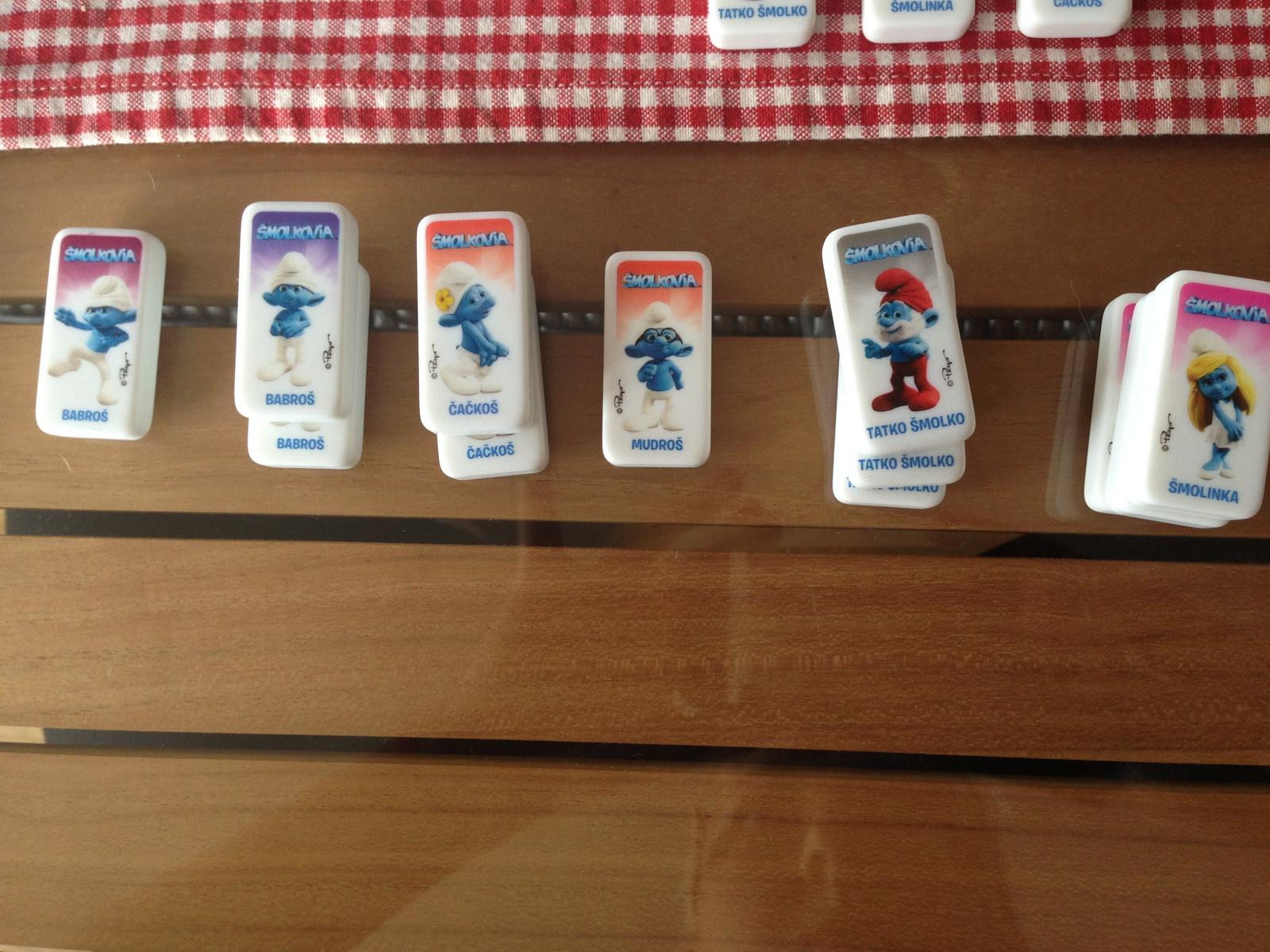 Menime najmenej 2 ks, kto by chcel nieco kupit,tak cena ako v Tescu 0,49 a postovne,väcsinu sme totiz kupili 🙂).Kocky su v 100% stave, s tymi na vymenu sa deti nehraju 😉 ,zákaz 😀 😀