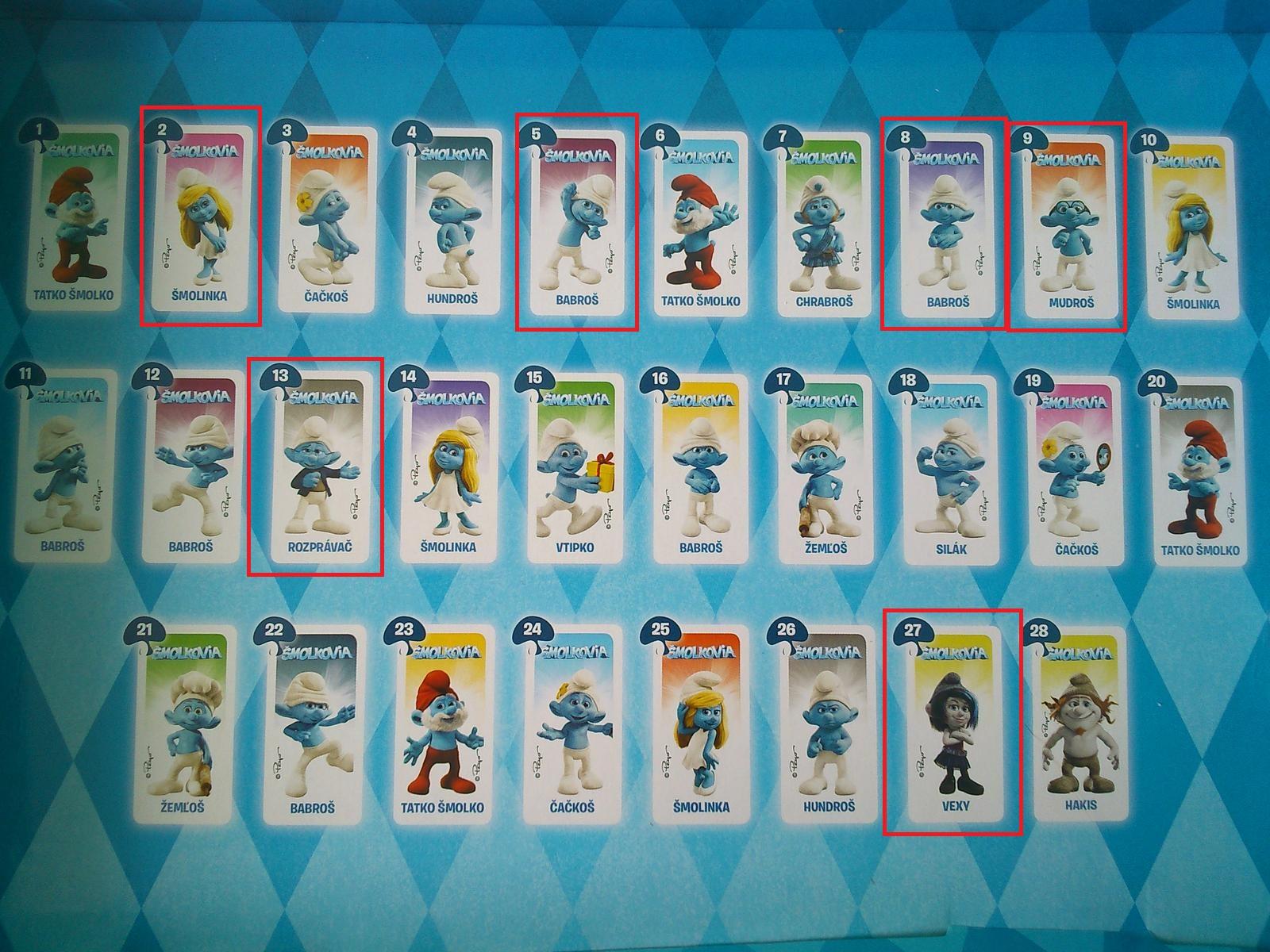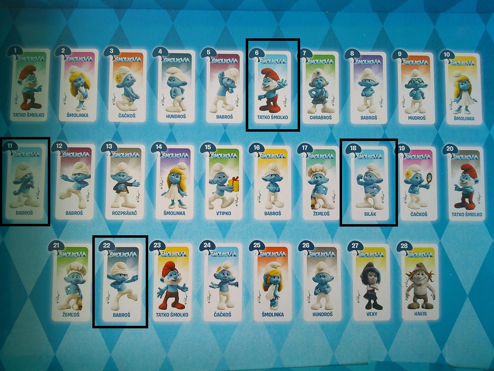 @huxy Ahojky, tatka šmolka č. 6 máme a chceli by sme ho vymeniť za šmoulinku č. 2. Teraz nie som doma, ale myslím, že by sme mali mať aj babroša č. 11 na výmenu (ale to by som potvrdila až na obed). Ak by som mala len šmoulinku, vymenila by si aj len jednu, či nie?