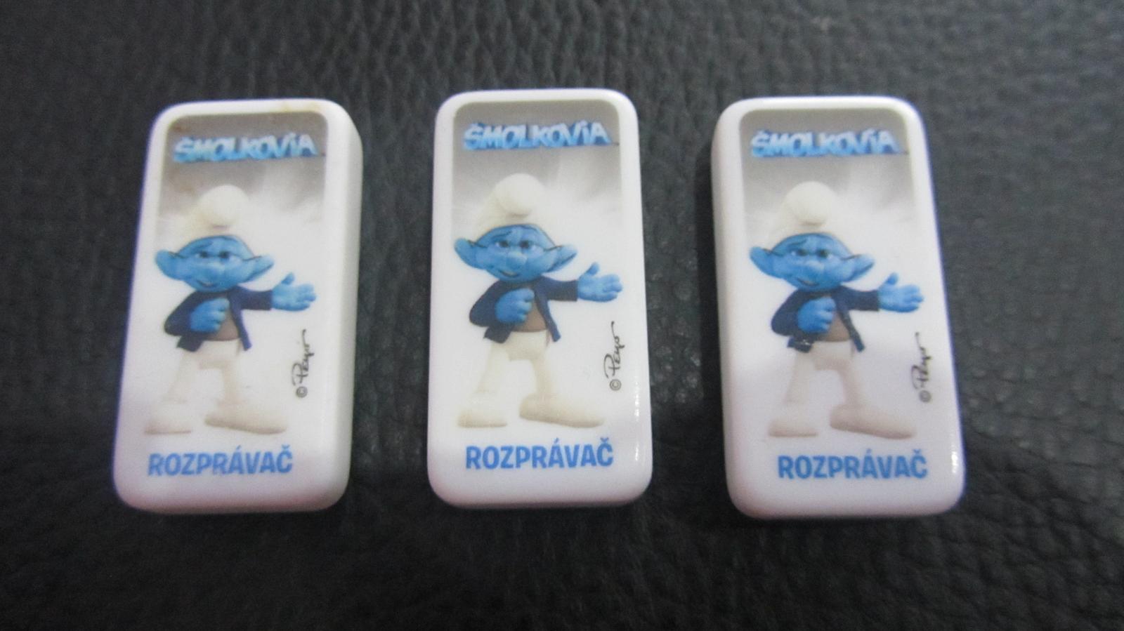 @li_la co by si prosim chcela za modreho cackosa z prvej foto, cierneho ci tmavomodreho babrosa z 2 foto, hundrosa modreho z 3 foto, zlteho tatka smolka zo 4 foto, a silaka a mudrosa z poslednej foto???? na vymenu mam, ale nie take, ktore potrebujes ☹