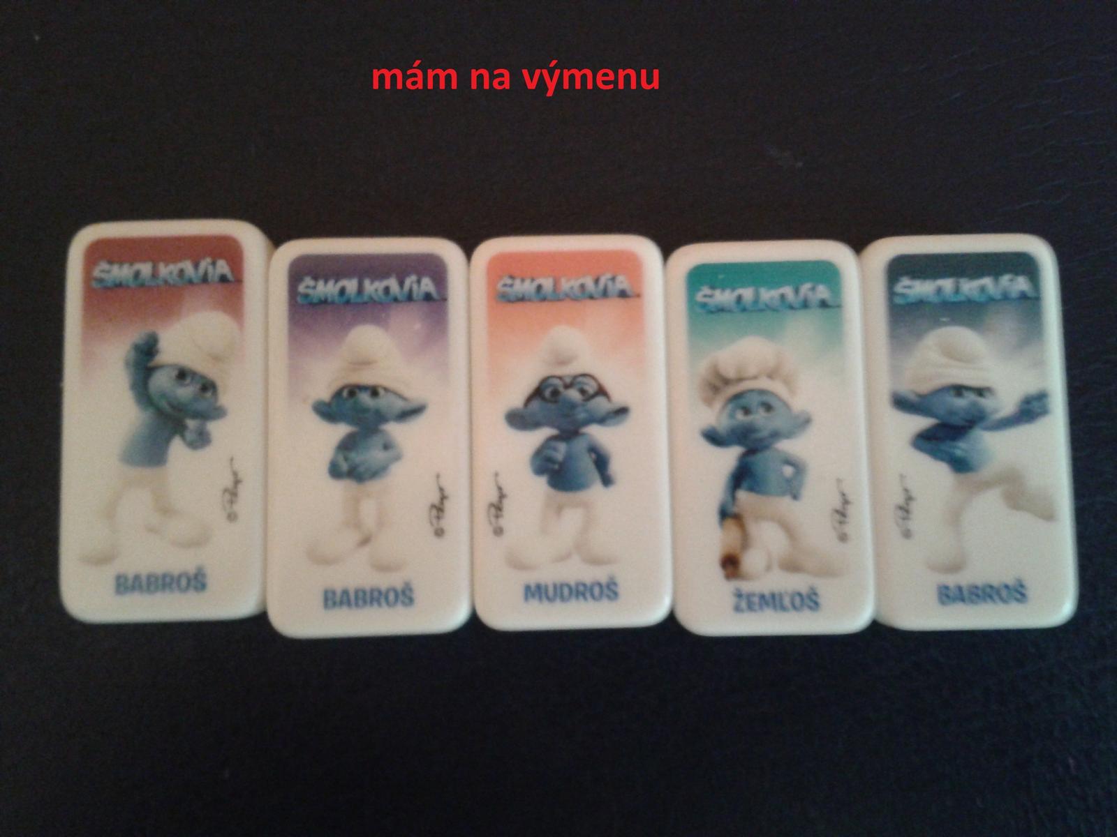 Ponúkam na predaj domino kocky Šmolkov. Mám k dispozícii tieto kocky: