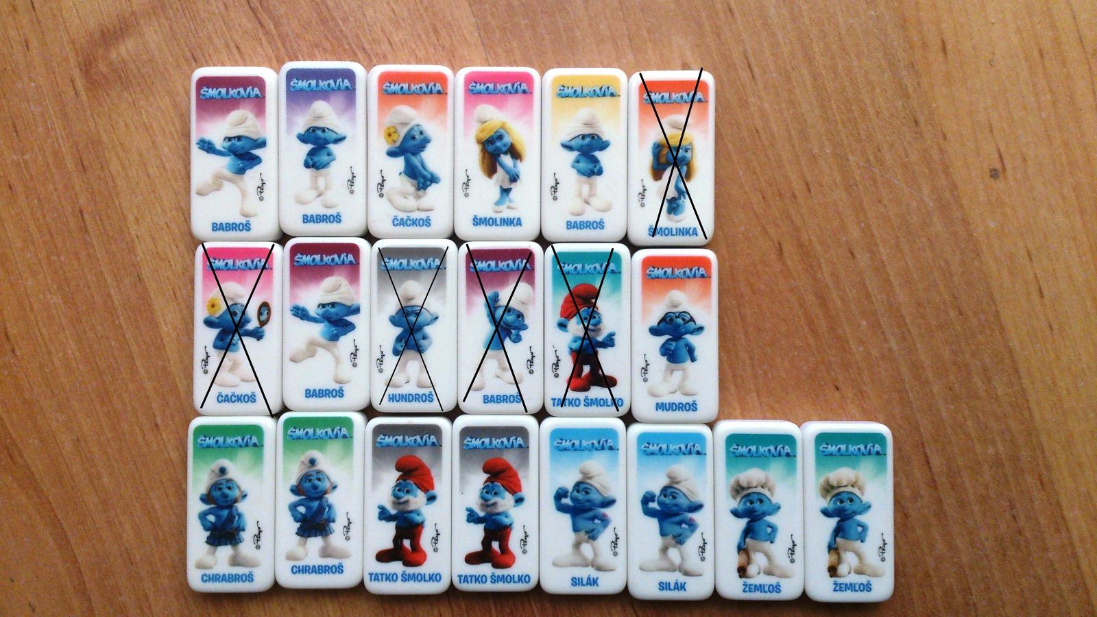 Ahojte, tak dnes som bola v BA v levandulovej kaviarni, 4 kocky som nasla v krabici a 2 kocky od babenky, ktora sa pristavila. 🙂 Super napad! Uz potrebujem len zlteho a zeleneho Tatka Smolka - c. 1 a 23. Na vymenu mam 7, 8, 9, 10, 12, 17, 18, 19, 21, 24, 25, 28. Ked sa mi podari zohnat dve posledne kocky, ostatne rada posuniem dalej. 😉 Nechapem trosku tie predajne akcie, kazi to atmosferu zbierania. Povodne som kocky ani neplanovala zbierat, ale akosi sa nahromadili a su peknucke, tak preco nie. A vratilo ma to do detstva... Ale tvarim sa, ze to robim pre 4-mesacneho synka. 😀