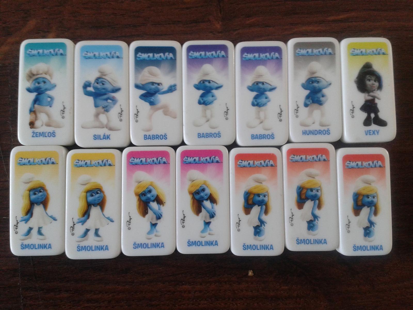 Mám na priamy predaj šmolko domino kocky č.5, č.8 (2x), č.9 (3x), č.11, č.13, č. 14 (2x), č. 16, č. 25. (viď nižšie FOTO)