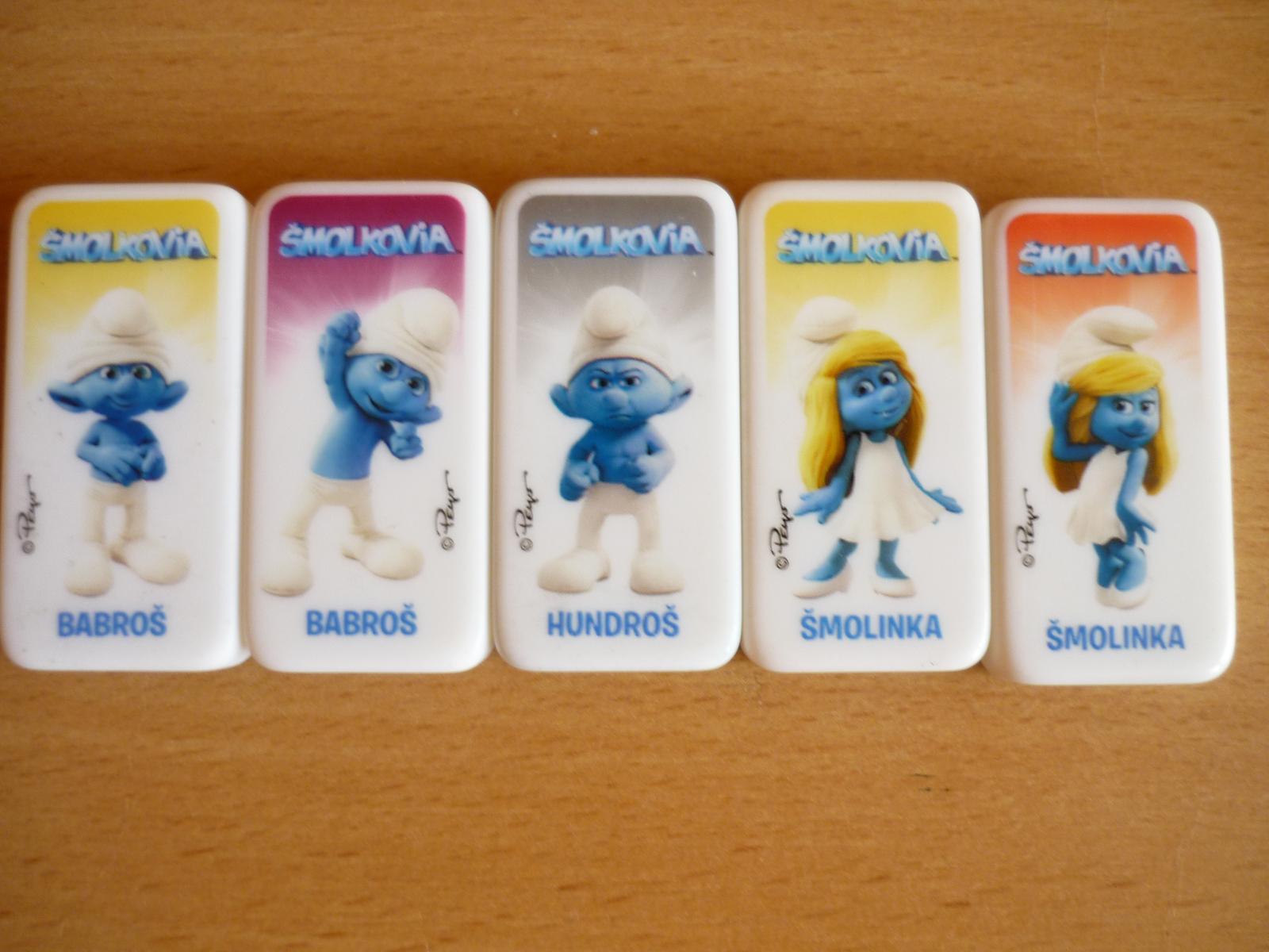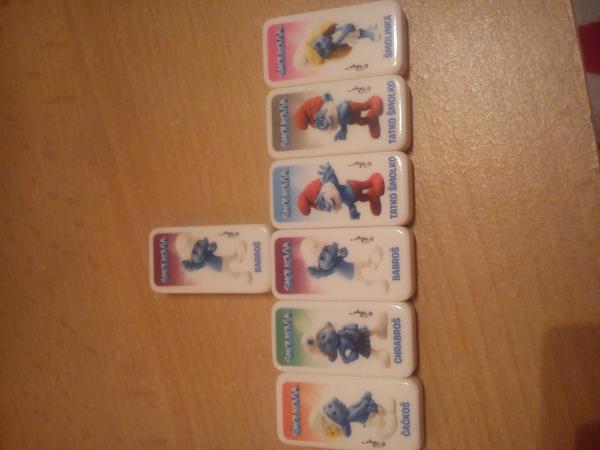 Mam na predaj domino kocky smolkov c. 2,3,4,6,8,9-(2x),10,13,17,19,22,25,26