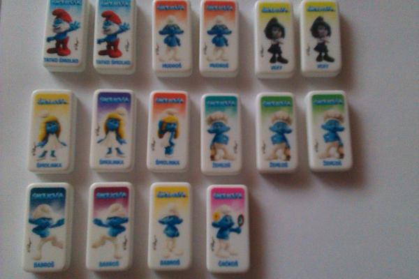 Predám šmolko domino 0,20€/ks: 2,7,11(2x),12,15,17(3x),20(3x),27(2x)