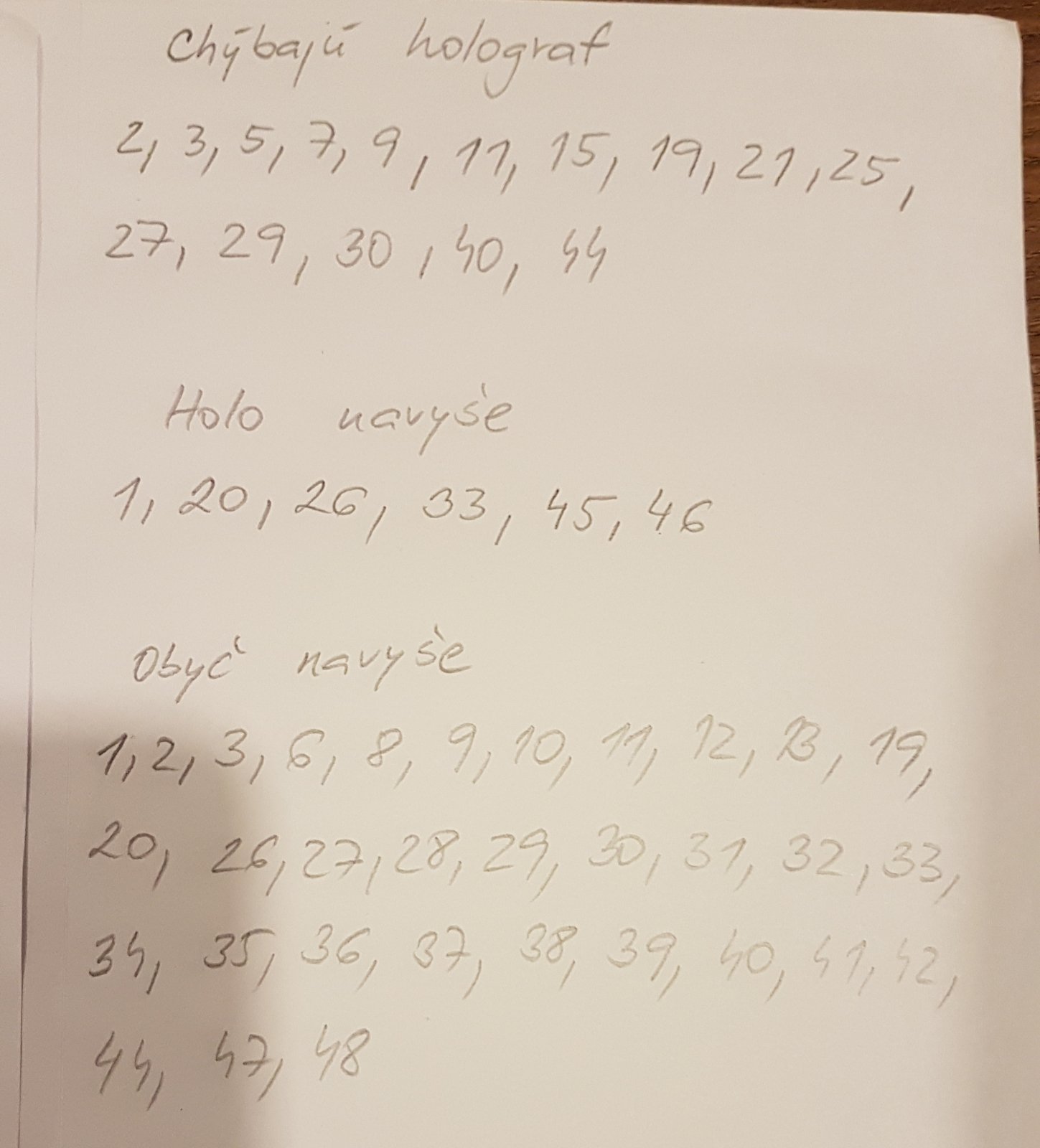 Vymenim hologramy mam navyse 06, 23, 34, 35, 45, za tieto co mi chybaju 05, 07, 09, 13,19,22, 30, 36, 44, 46, 47. ponuknite