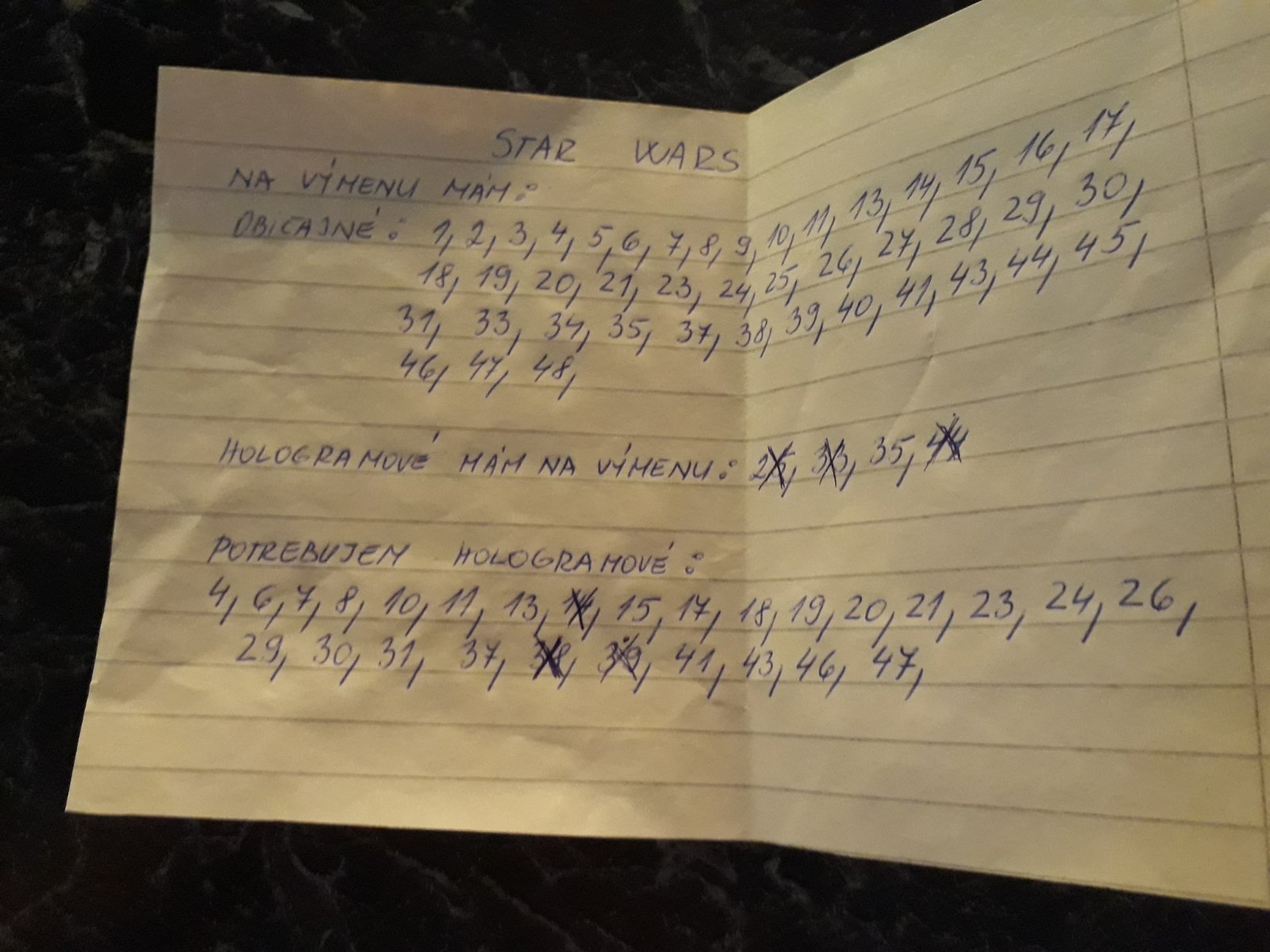 Potrebujeme holo cisla 1.3.6.7.8.9.11.13.18.23.29.30.39.42. Obyčajne 28.40..na výmenu mám len obyčajné 4x1.3x2.4.8.11.15.17.18.20.25.30.2x39.2x41.46.2x48