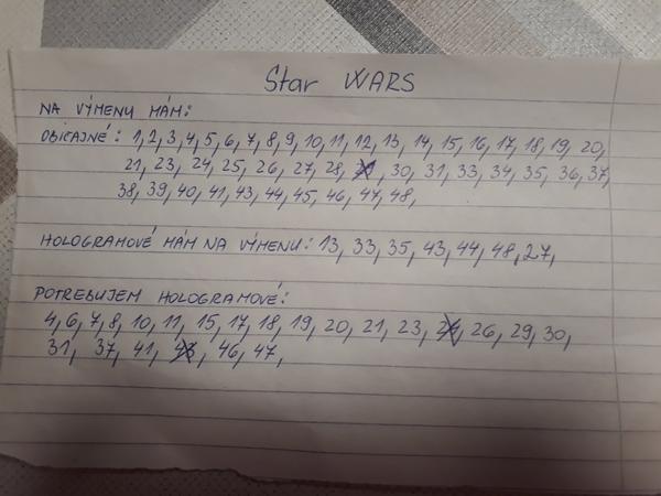 po vyzbierani nam zostali na predaj holo karticky: 3, 11, 19, 22, 22, 25, 29, 32, 34, 36, 42, 43 ... pripadne darujeme hocijake obycajne za postovne ...