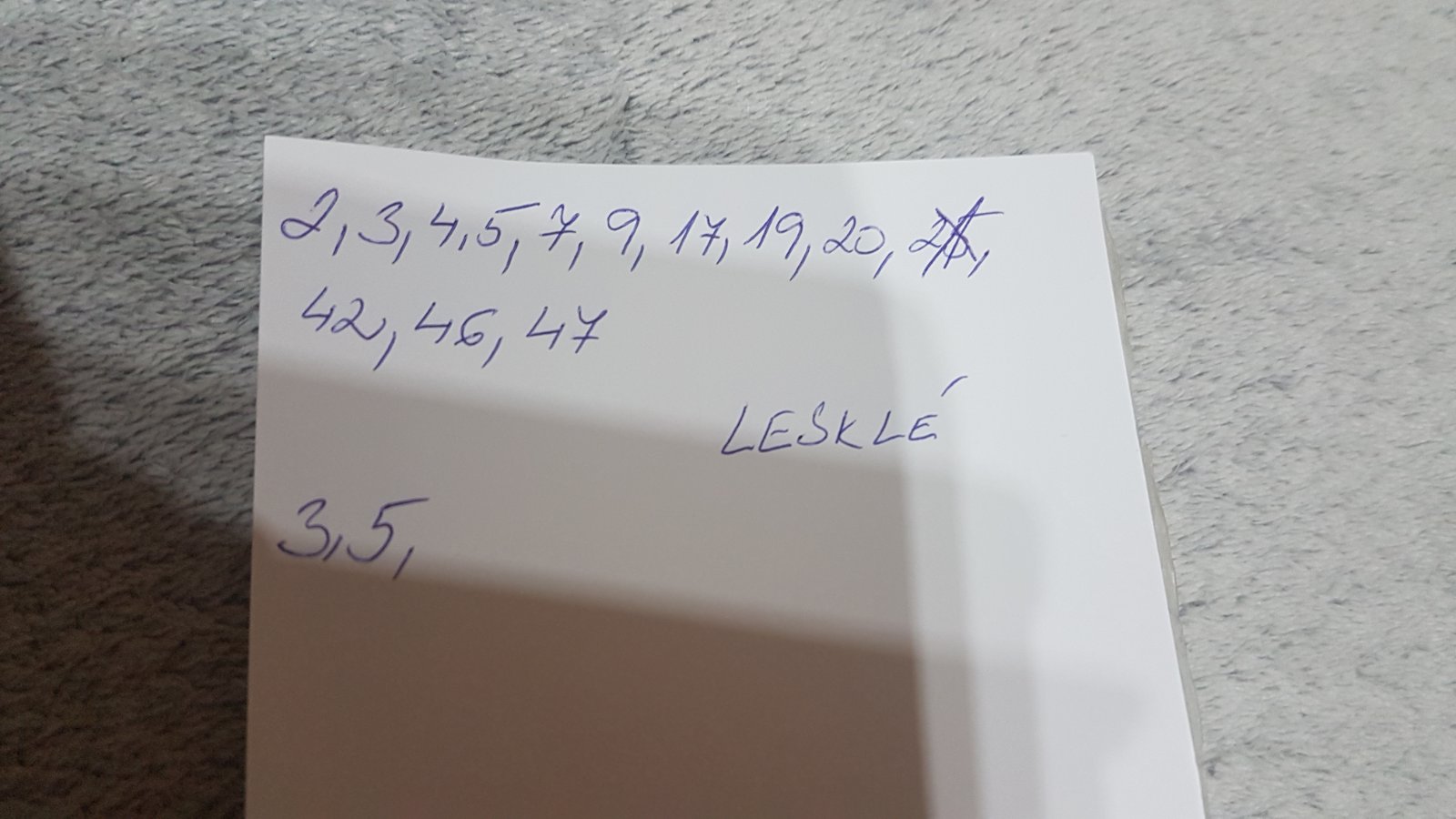 @mamina6410 Dobrý večer, prosím vás a pošlete mi ich za poštovné? Lesklé bohužiaľ nemáme,len pár a ani ich už veľmi nehľadám, lebo by to bolo príliš drahé. Ďakujem veľmi pekne