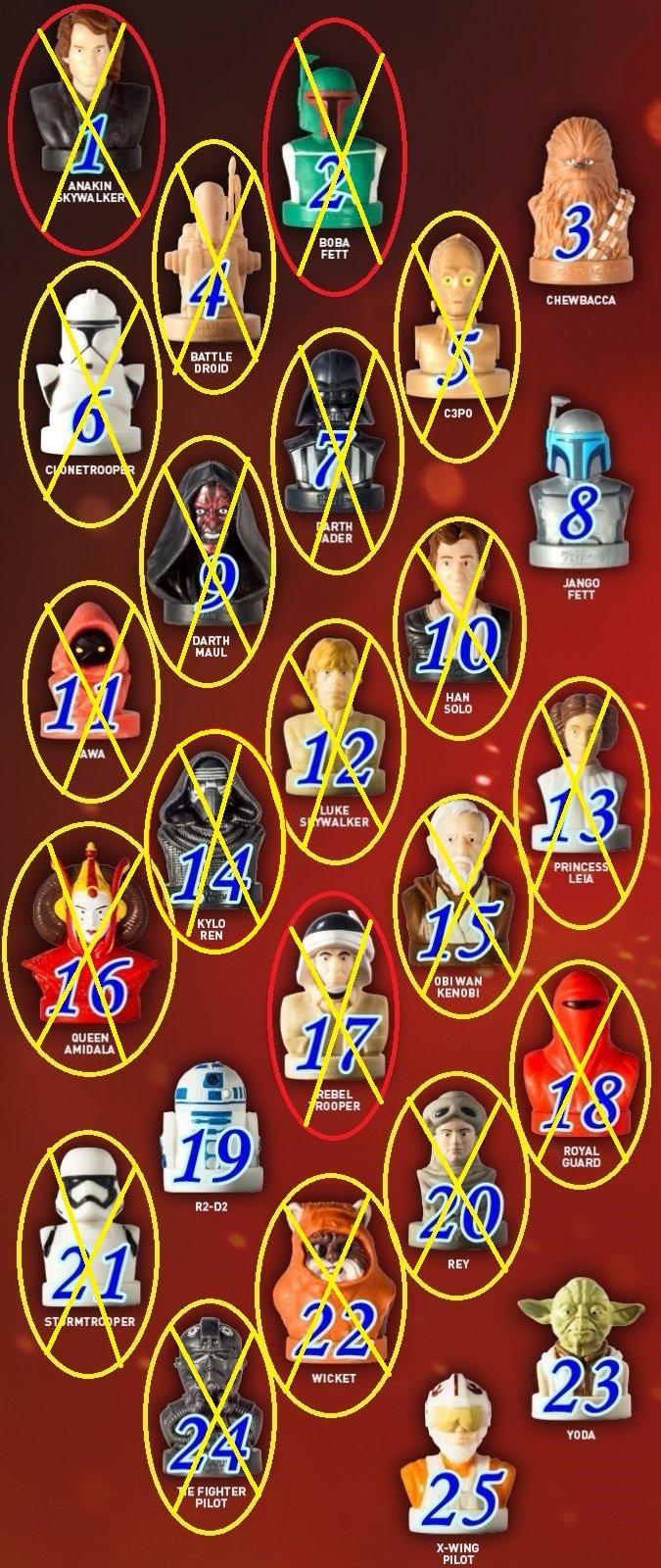 Ešte mám tieto : 2x Darth Maul,2x X-Wing pilot, 2x Jawa, Luke Skywalker,Yoda, Rey,2x Princess Leila, The Fighter Pilot, 2x Boba fett