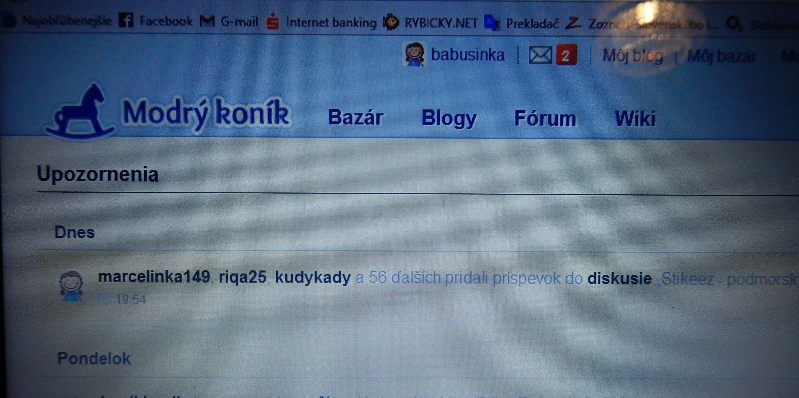Dobrý večer mamičky. Chcem sa vam všetkým ospravedlnit, že som pisala, aby ste neklikali na moje meno. Lebo každe jedno kliknutie sa zobrazilo aj mne ako upozornenie na ktore som reagovala. Určite si to pamatate. Už viem že vy ste za to nemohli. Prepáčte mi to bol to počitačový ŠKRIATOK.Viete ked niekto 56 krat ide za den pozriet čo od neho niekto chce, tak to je moc. Ako dokaz Vid. foto. Dakujem za pochopenie