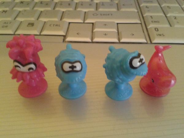 môžem vám predať "len" 7 ks - toho žltého strapáča - Fuzzy - vymieňam u nás doma. Ostatných - horný rad 4 ks /okrem stredného zeleného/ a dolný rad 3 ks od stredu do prava (ružový koník, rybka, žltý koník) vám môžem predať.