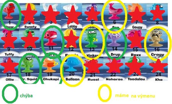 Na oplátku ponúkam príšery, ktoré mám navyše: Balloon, Cragy, Ollie, Sweety, Billy, Mr. Squid, Nohorse... 😅