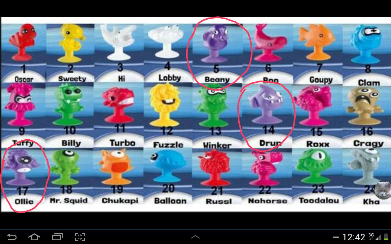 chýba mi oscar,chupaki, tuffy a ballon, na výmenu mám hi,boo, toodalou
